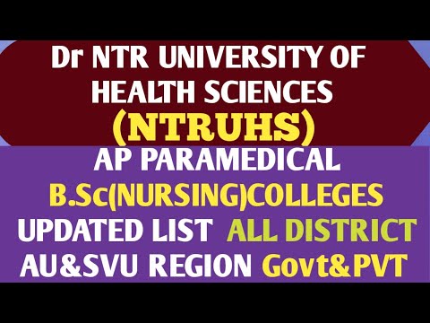 Dr NTR University of Health sciences Carries out the admission process In B.Sc (Nursing) ,BPT,MLT and Various Paramedical Courses Located in Andhra pradesh. it is further Divided into Andhra University(AU) Region and Sri Venkateshwara University (SVU) region.